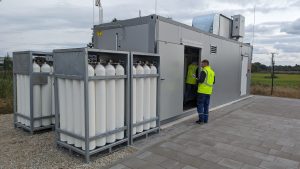 The idea is to complement an existing short-term battery system with a storage system able to hold up to 23kg of hydrogen at 99.999% purity that can be reconverted to electricity via five Intelligent Energy 4kW fuel cells to buffer power outages in the railway network.