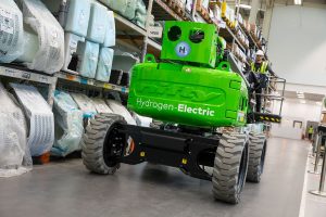 Fuel cell powered access platforms deployed on construction sites to reduce carbon emissions.